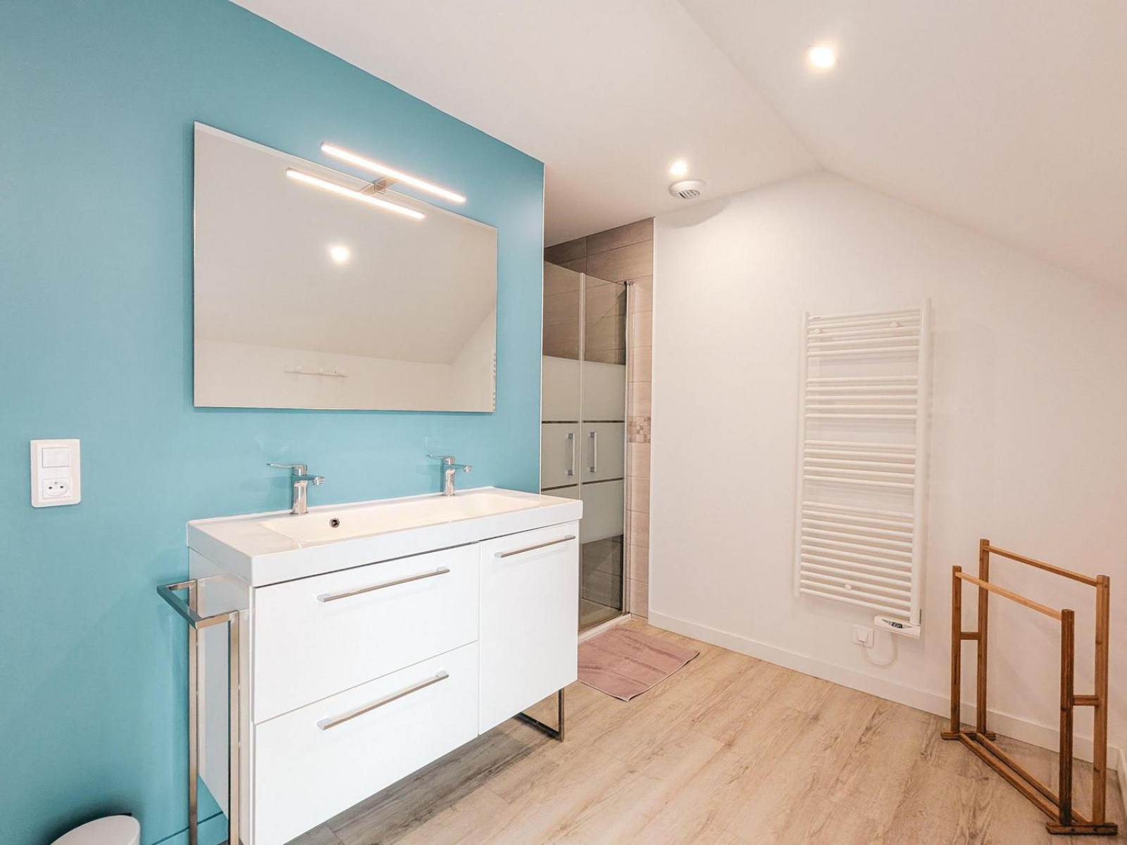 À l’étage, la maison propose trois belles chambres, dont deux en double niveau, ainsi que deux salles d’eau de 7 m²chacune, modernes et fonctionnelles.
